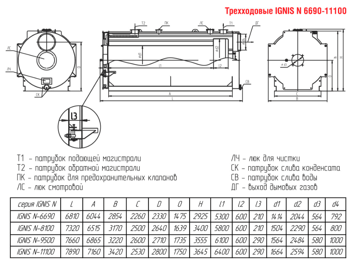 Технические характеристики водогрейного трёхходового котла для тепличных хозяйств ARCUS IGNIS N-11100