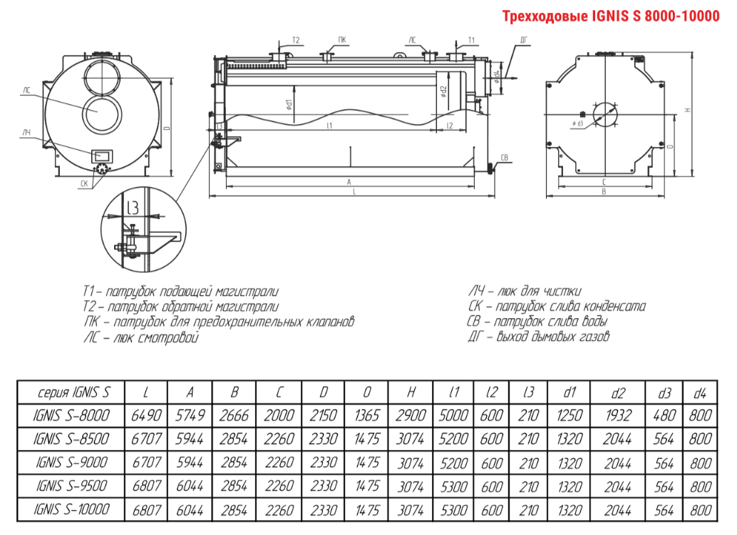 Технические характеристики водогрейного трёхходового котла ARCUS IGNIS S-8000